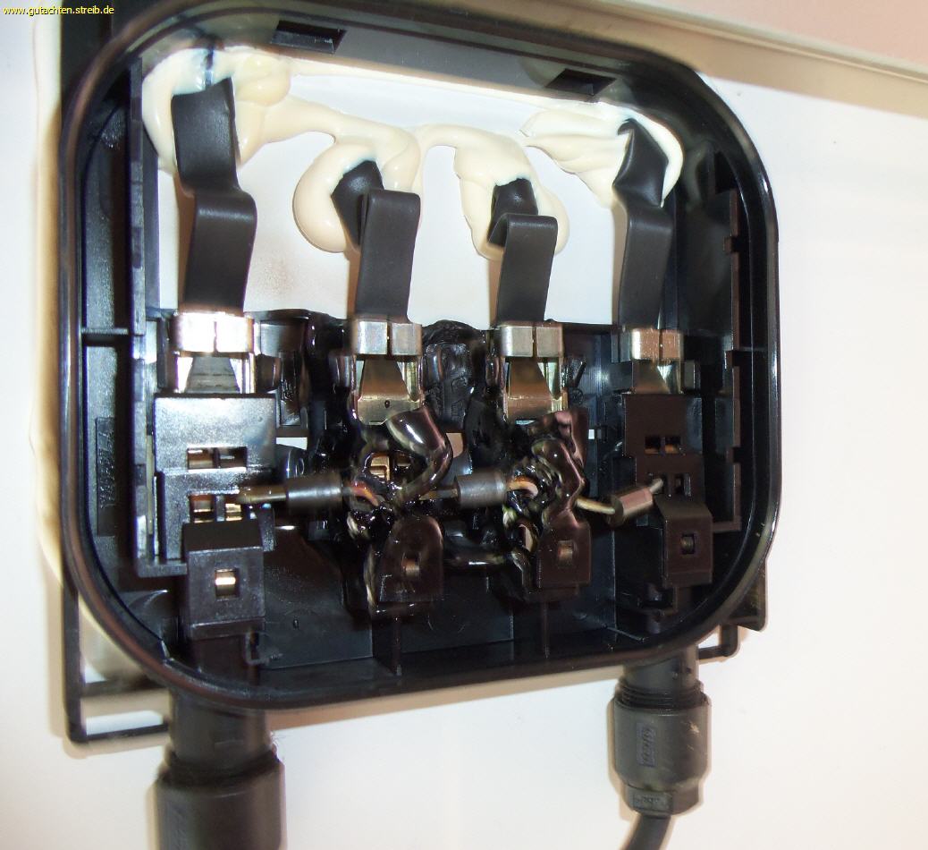 Durch Blitz zerstörter Kabel Übergabepunkt