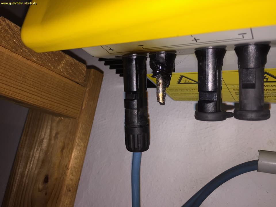 Zerstörter Wechselrichter nach Blitzeinschlag