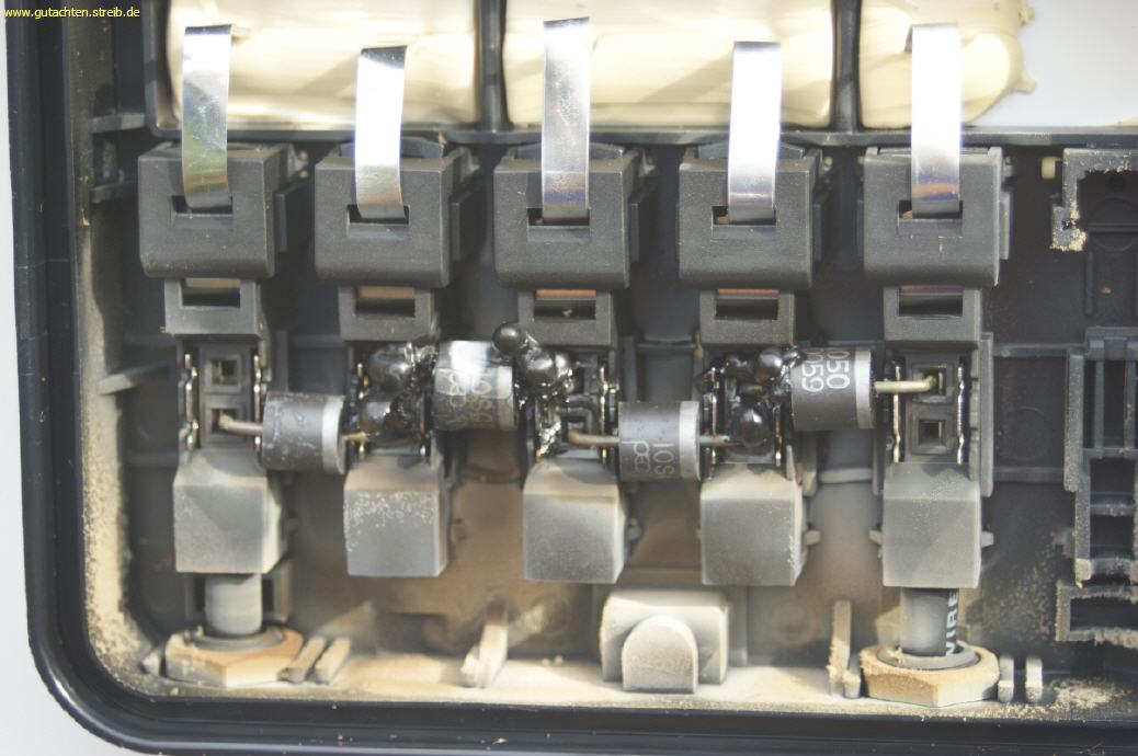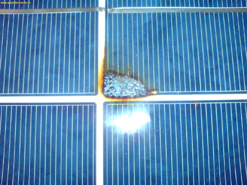 Ausgebrannte Modulanschlußdose eines PV Moduls