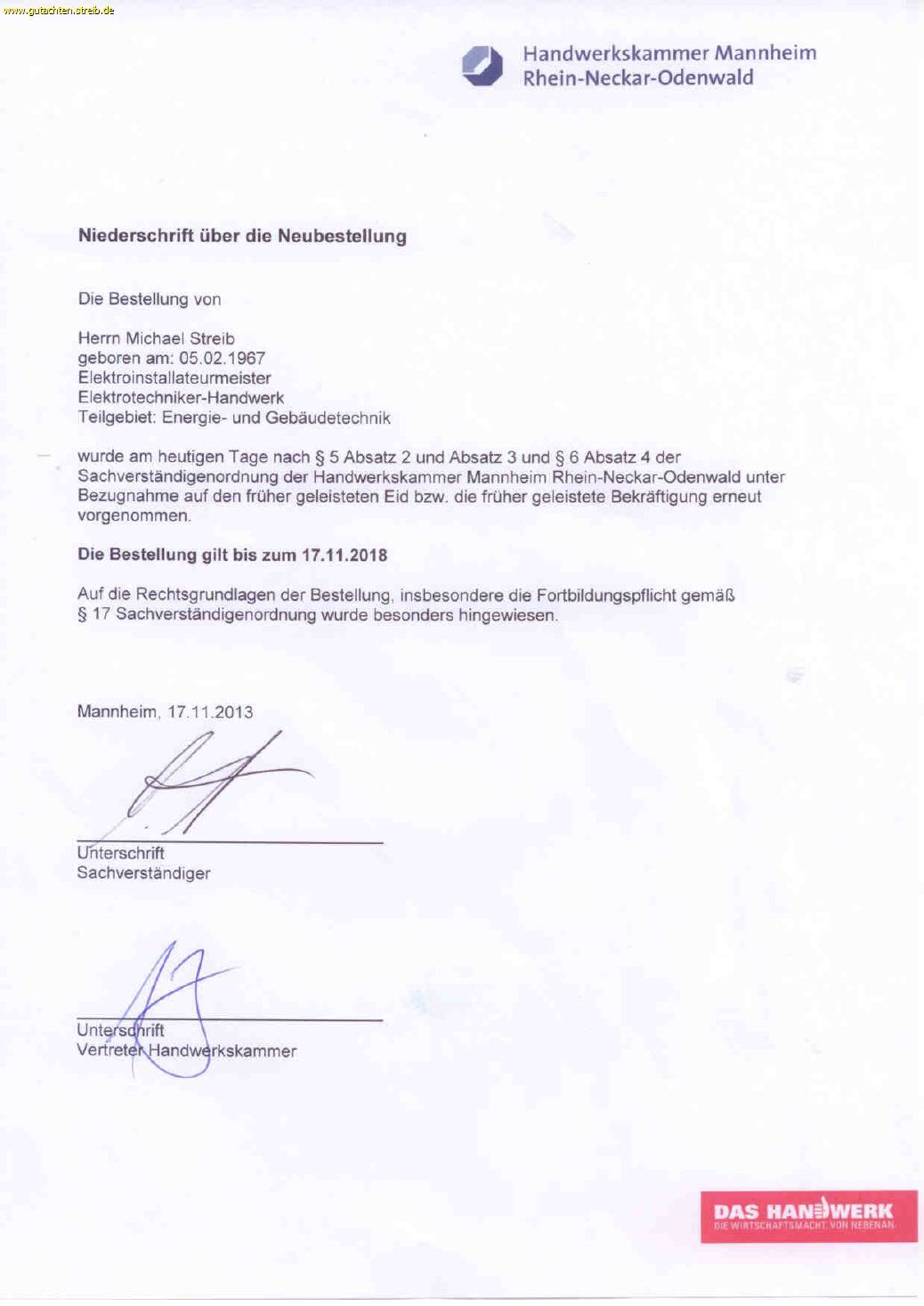 | Stv. Prüfungsausschußvorsitzender HWK Mannheim Fachkraft für Solartechnik | Mitglied im Meisterprüfungsausschuss der HWK Mannheim | 17.11.2008 Vereidigung zum öffentlich bestellten Sachverständigen im Elektrotechniker Handwerk |